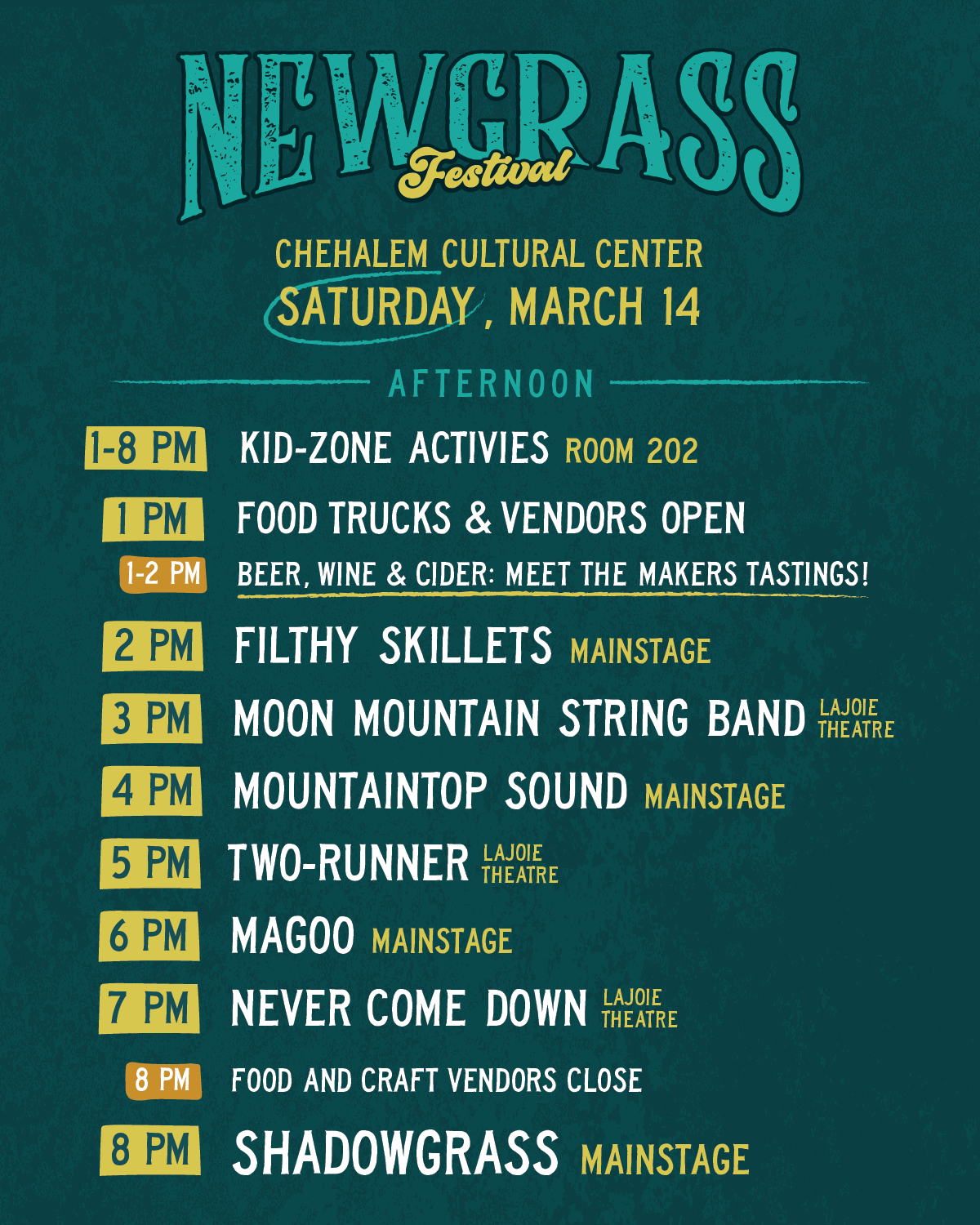 3pm-4pm | Food trucks and Vendors open + Beer/Wine/Cider Meet the Makers Tastings